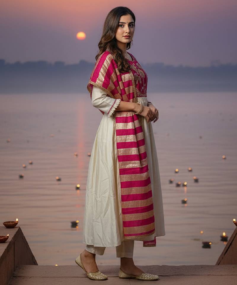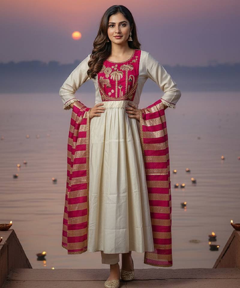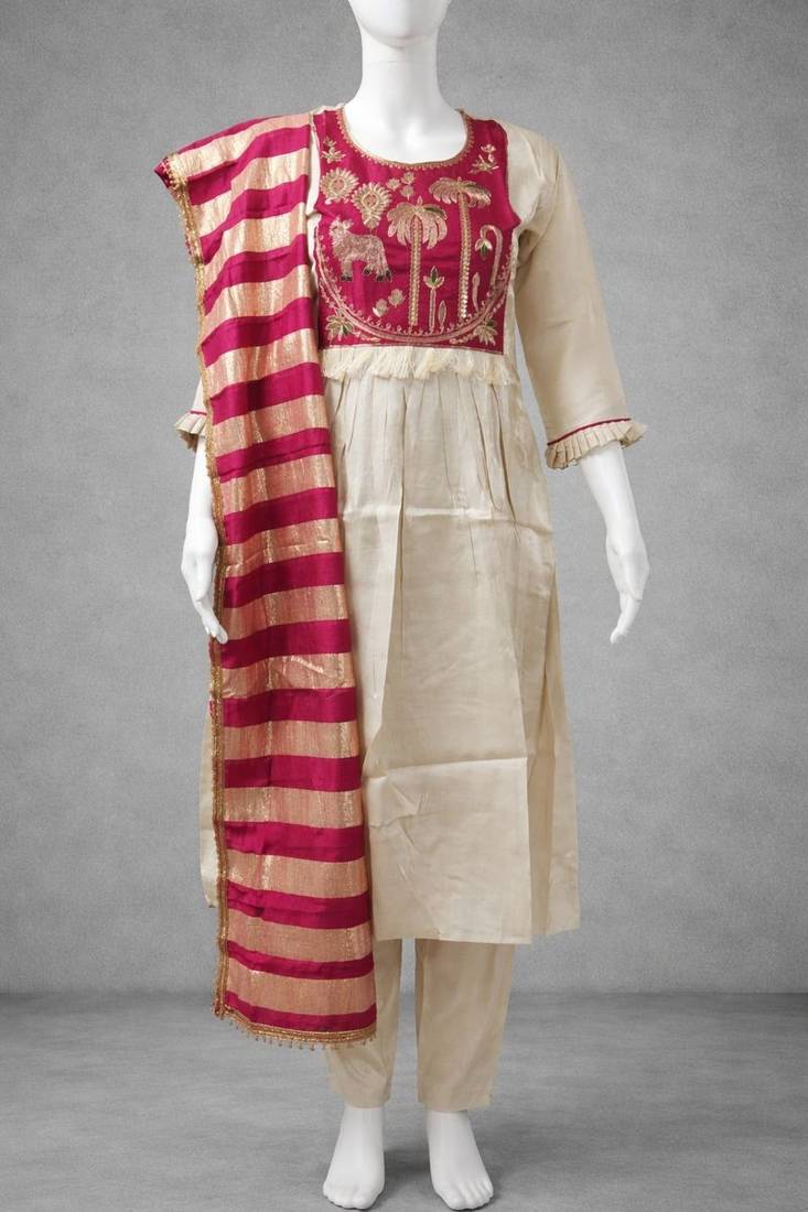 | Product Name | Label Divine Attire Women Off White & Red Silk Blend Embroidered Kurta Pant Set With Chanderi Dupatta | |