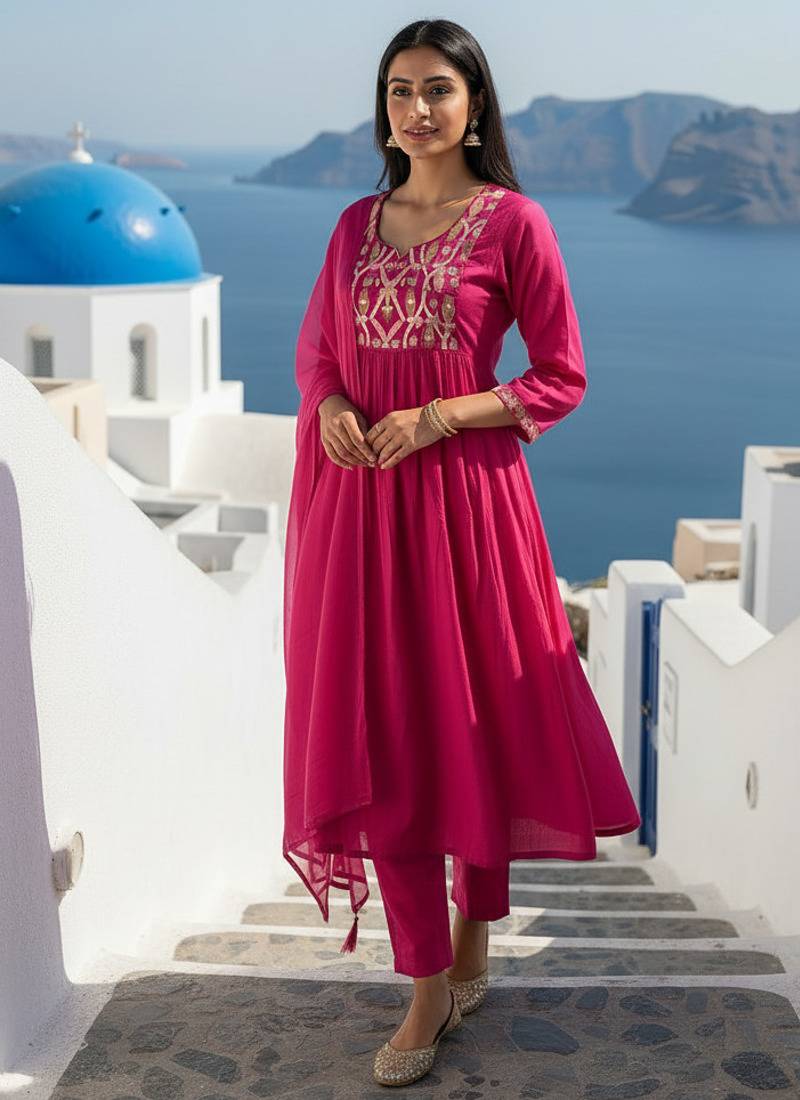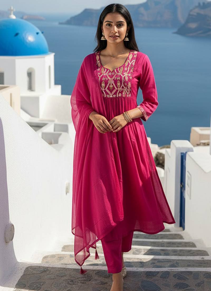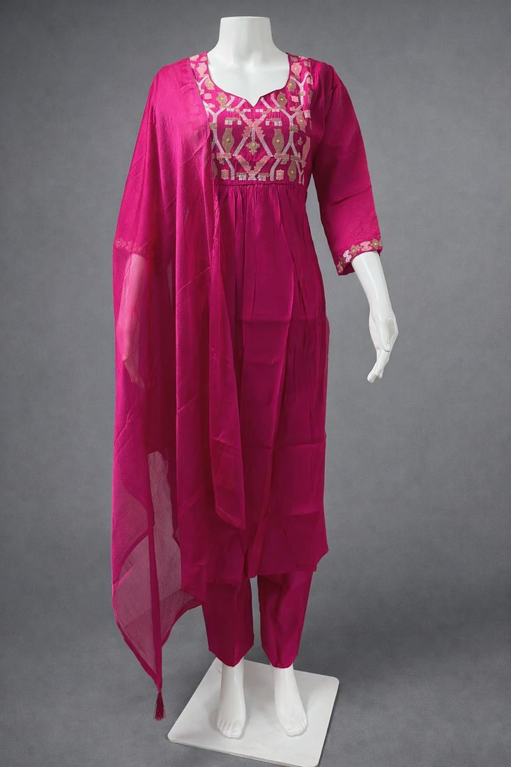 | Product Description | Elegant Pink Chanderi Kurta Pant Set Featuring Multicolor Thread Embroidery. The Kurta Comes With A Classic Round Neck And Comfortable Full Length Sleeves, Paired With A Matching Chanderi Pant And A Soft Chinnon Dupatta. Perfect For Festive Wear, Casual Gatherings, And Traditional Occasions. |