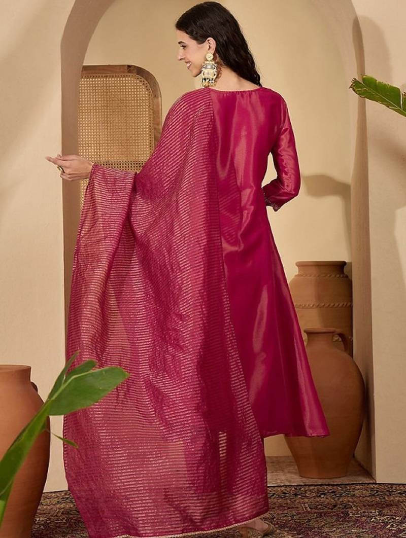 | Product Name | Label Divine Attire Women Pink Shimmer Silk Blend Embroidered Kurta Pant Dupatta Set | |