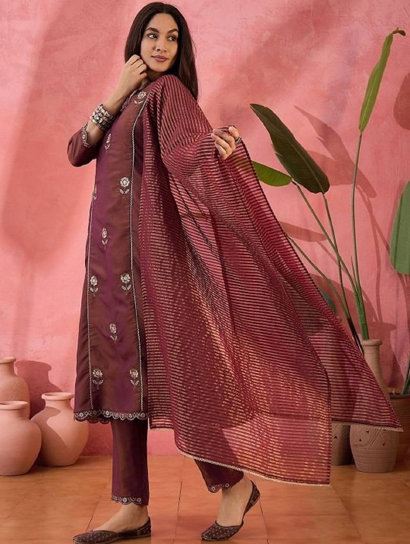 | Product Name | Label Divine Attire Women’s Maroon Shimmer Silk Blend Floral Embroidered Kurta Pant Set With Dupatta | |