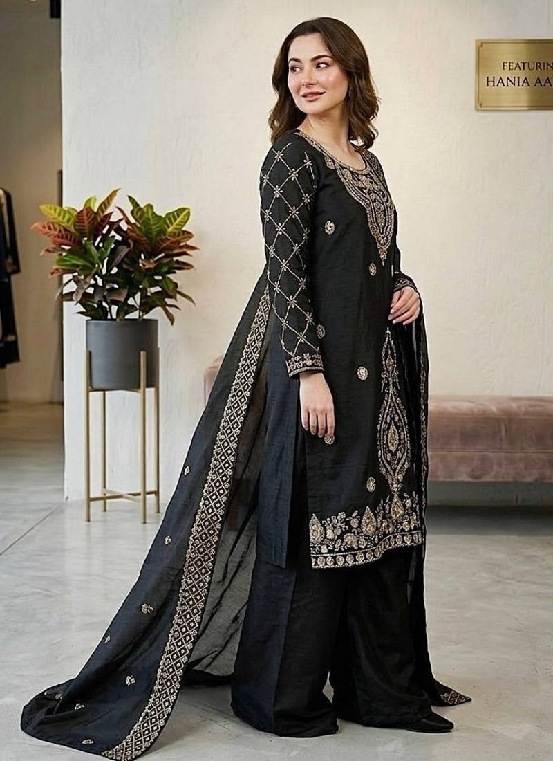 | Product Name | Black Silk Blend Embroidered Beads Work Plazzo Suit | |
