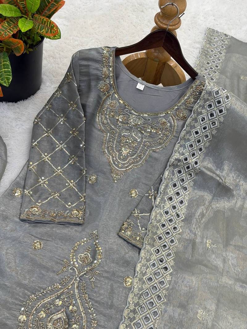 | Product Name | Grey Silk Blend Embroidered Beads Work Plazzo Suit | |