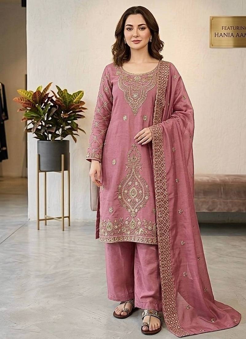 | Product Name | Pink Silk Blend Embroidered Beads Work Plazzo Suit | |