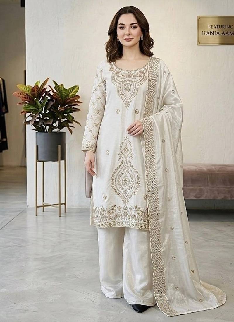 | Product Name | White Silk Blend Embroidered Beads Work Plazzo Suit | |