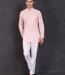 Pink cotton short kurta set with plain work