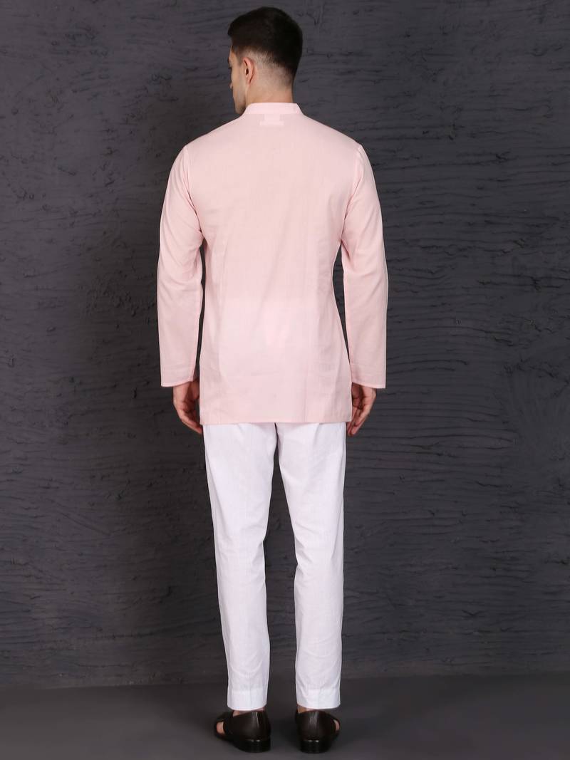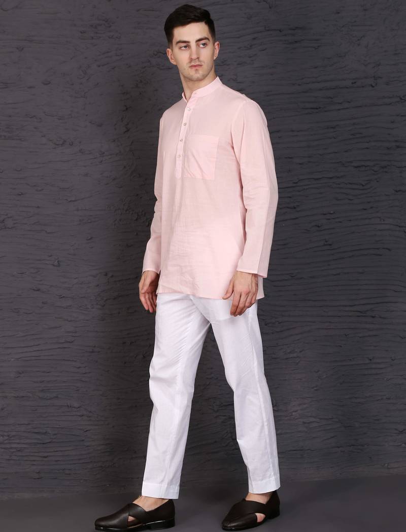 | Product Description | This Pink Cotton Short Kurta Set Features A Plain Work Design With A Chinese Collar Neck And Full Sleeves. The Short Kurta Is Paired With A White Blended Cotton Pant In Trouser Style. Made From Breathable Fabric, The Stitched Set Offers Comfort And A Traditional Appearance. Includes One Kurta And One Pant. |