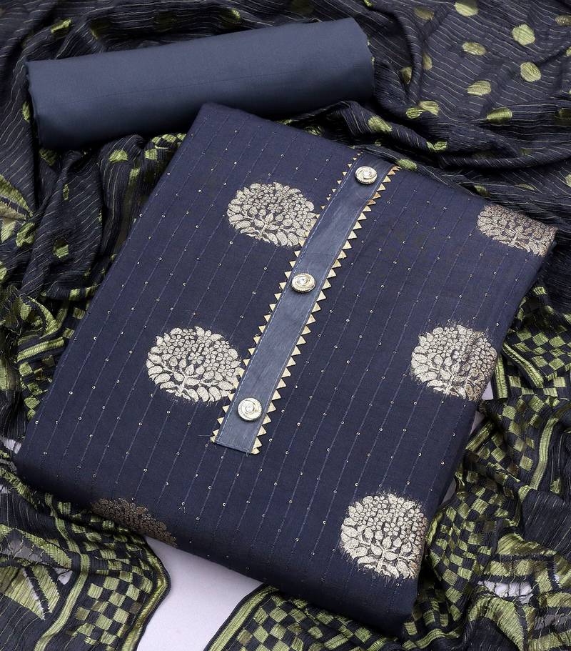Banarasi buta sequin top with cotton bottom and saboori print dupatta set dress material unstitched