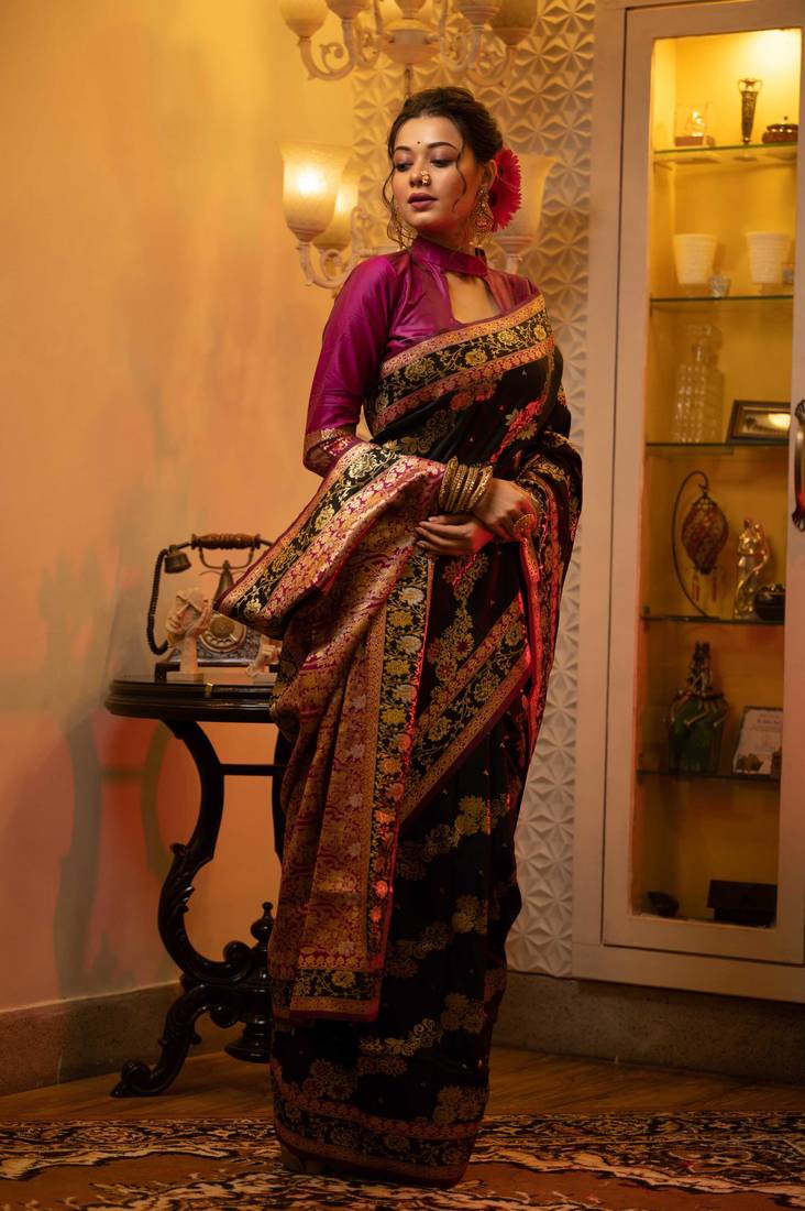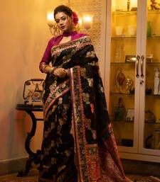 Black woven banarasi silk saree with blouse