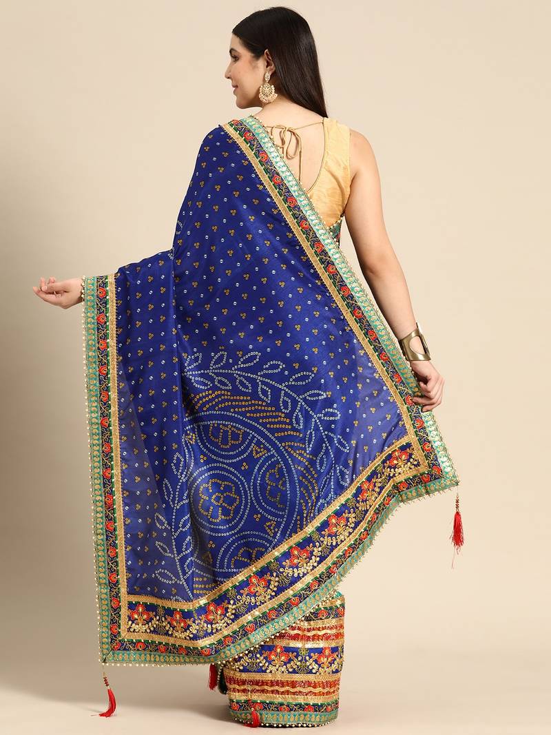 | Product Name | Blue Bandhani Saree With Lace Border And Unstitched Blouse Piece | |