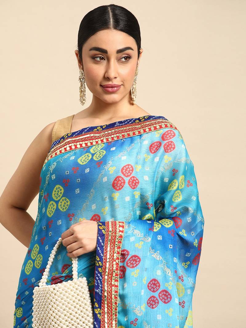 | Product Name | Blue Bandhani Saree With Lace Border And Unstitched Blouse Piece | |