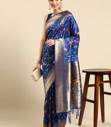 Blue woven kanchipuram silk saree with blouse