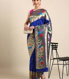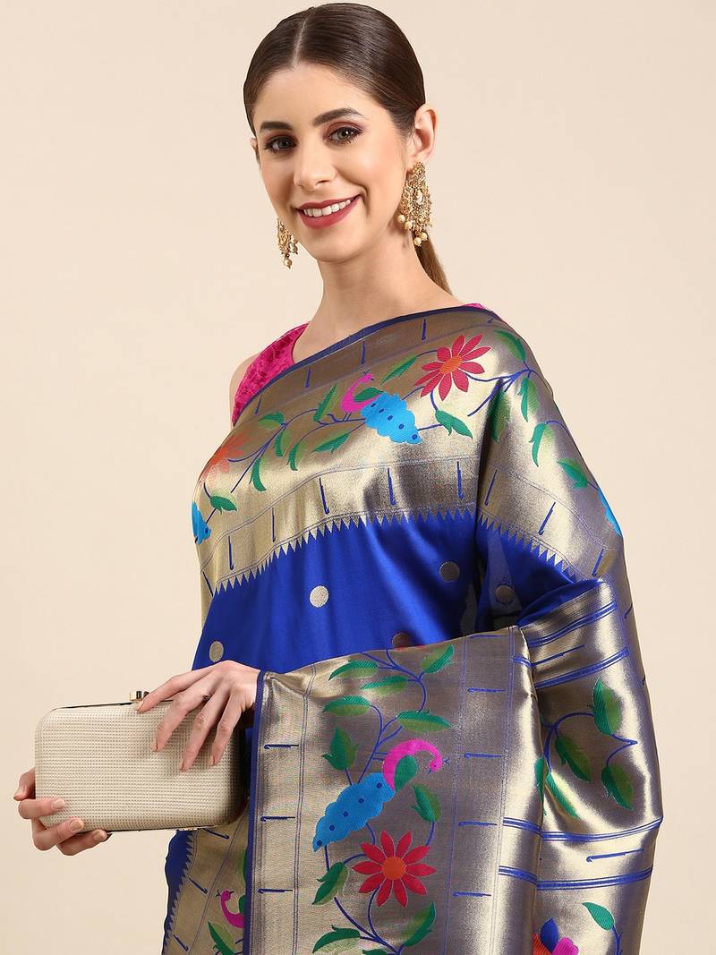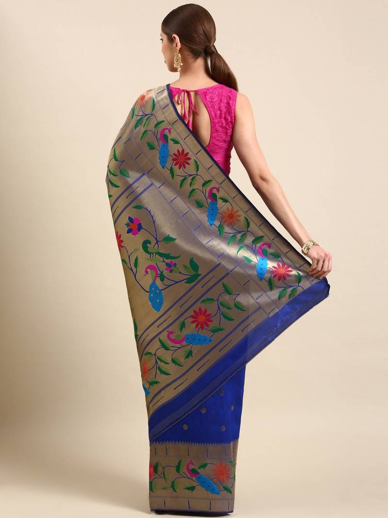 Blue woven paithani silk saree with blouse