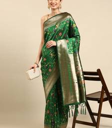 Dark green woven kanchipuram silk saree with blouse