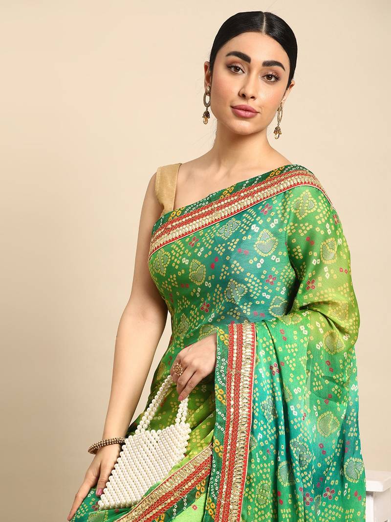 | Product Name | Green Bandhani Saree With Lace Border And Unstitched Blouse Piece | |