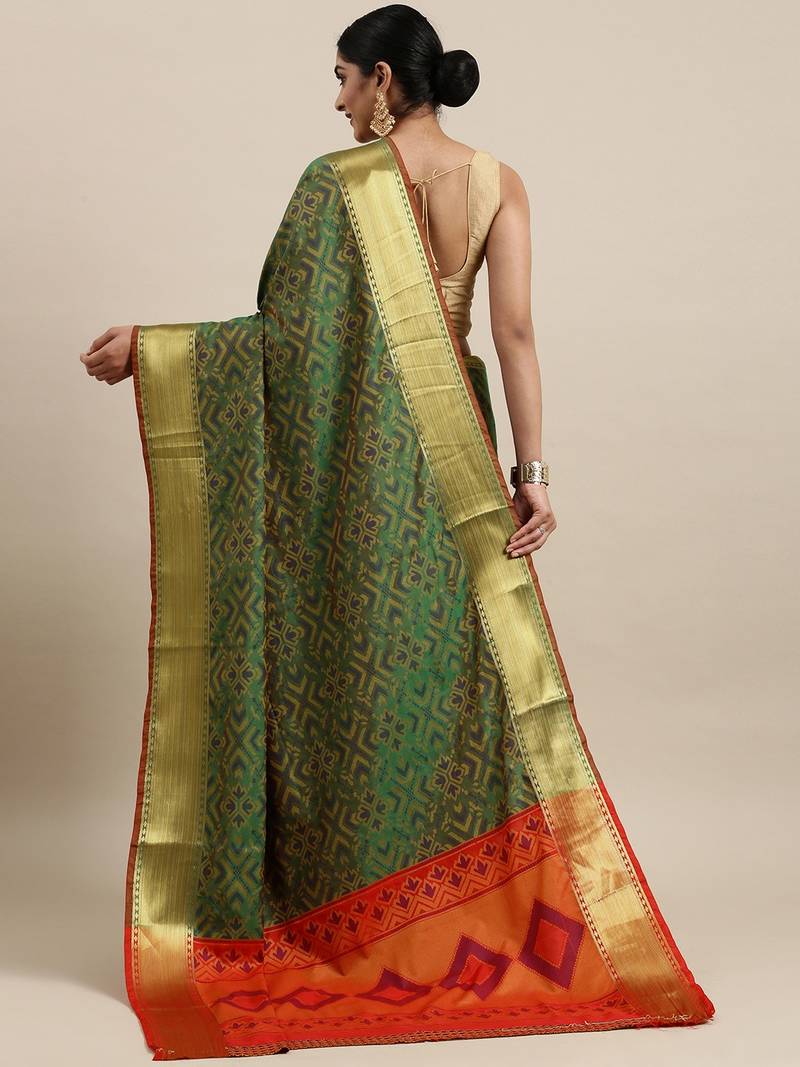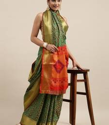 Green woven banarasi silk saree with blouse