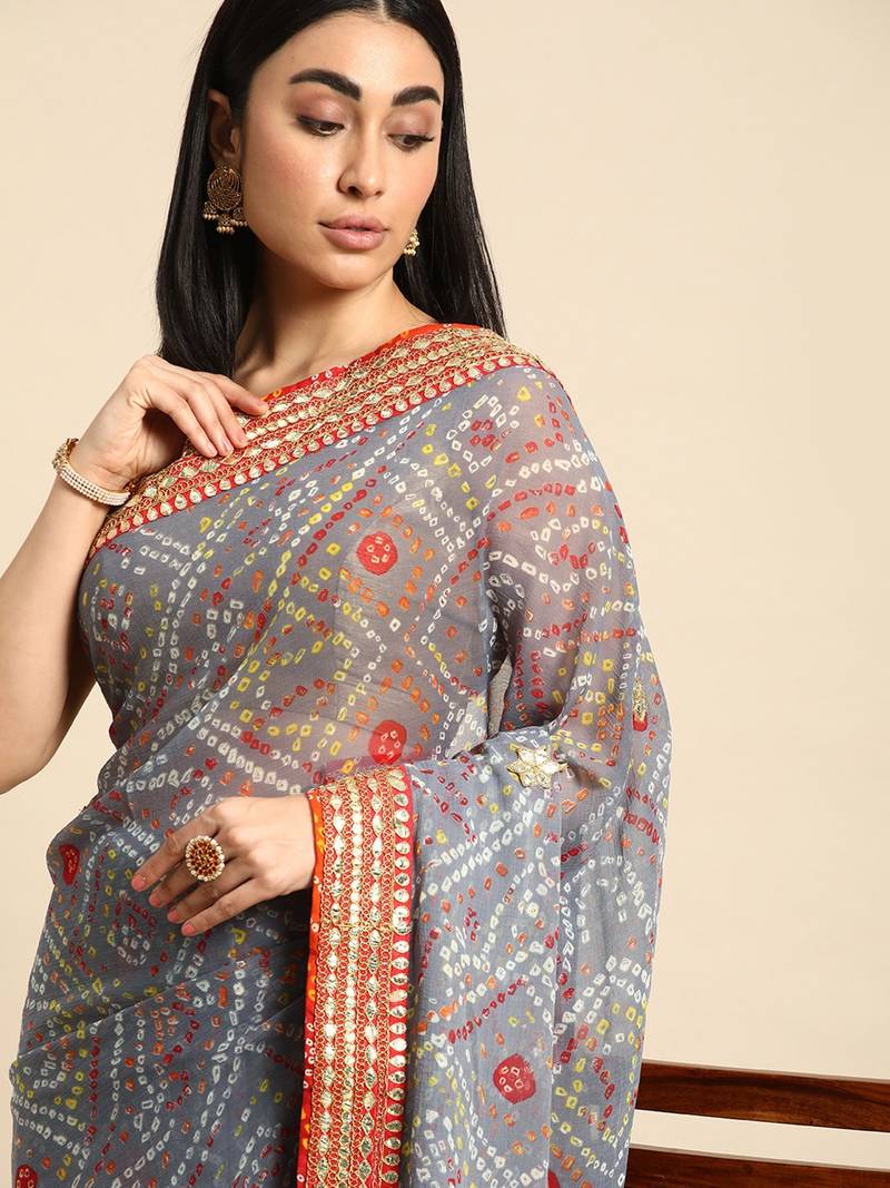 | Product Name | Grey Bandhani Saree With Lace Border And Unstitched Blouse Piece | |