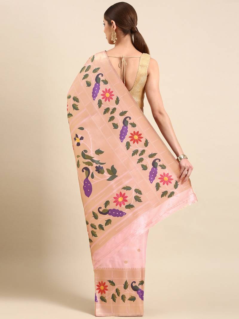 Light pink woven paithani silk saree with blouse