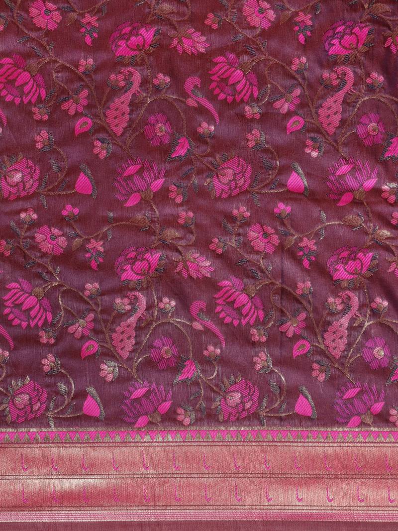 Magenta woven banarasi silk saree with blouse