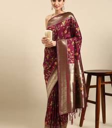 Maroon woven kanchipuram silk saree with blouse
