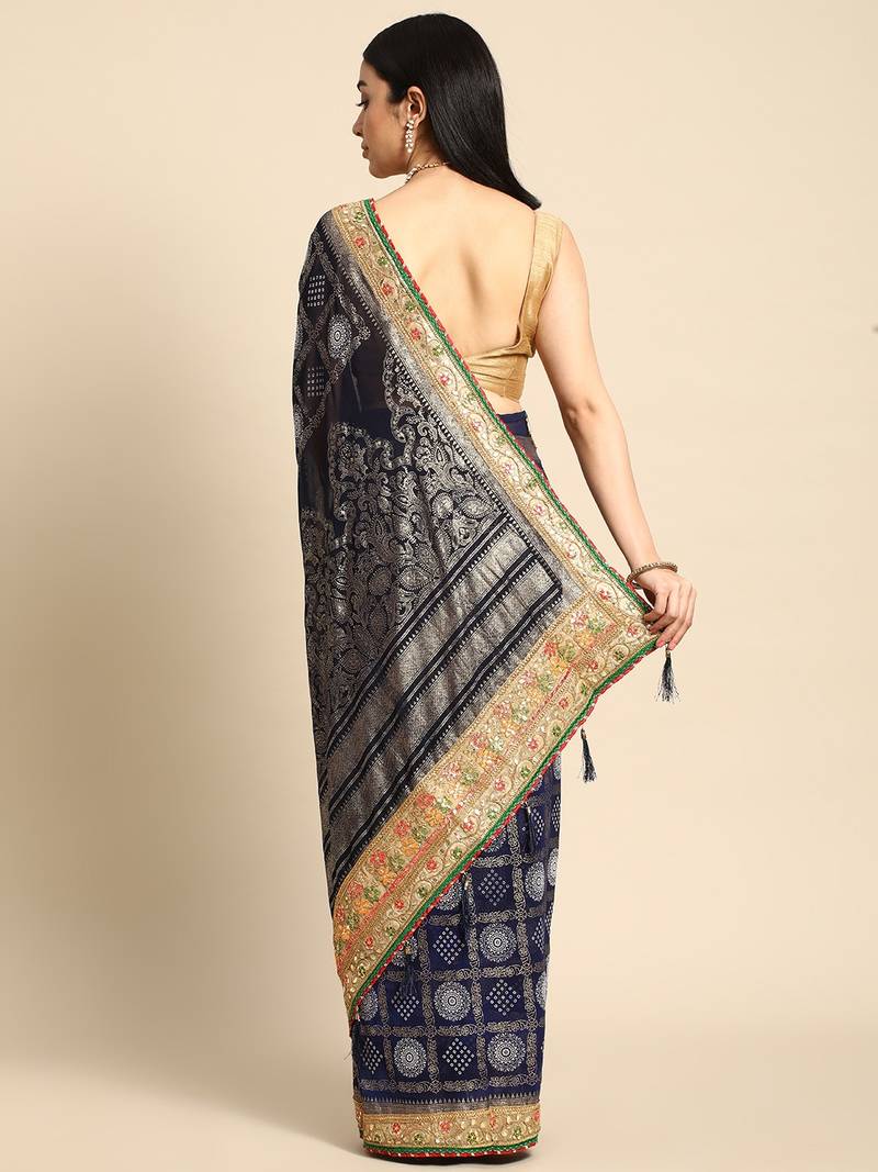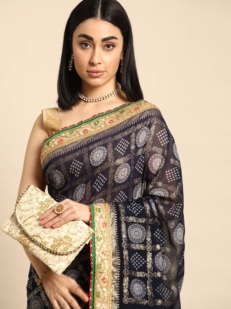 | Product Name | Navy Blue Bandhani Saree With Lace Border And Unstitched Blouse Piece | |