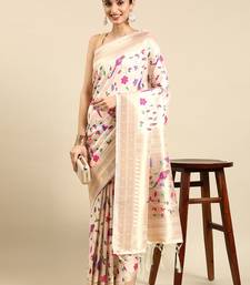 Off white woven kanchipuram silk saree with blouse