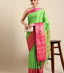Parrot green woven silk blend saree with blouse