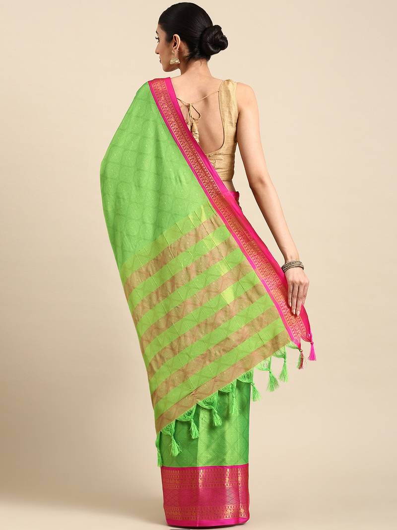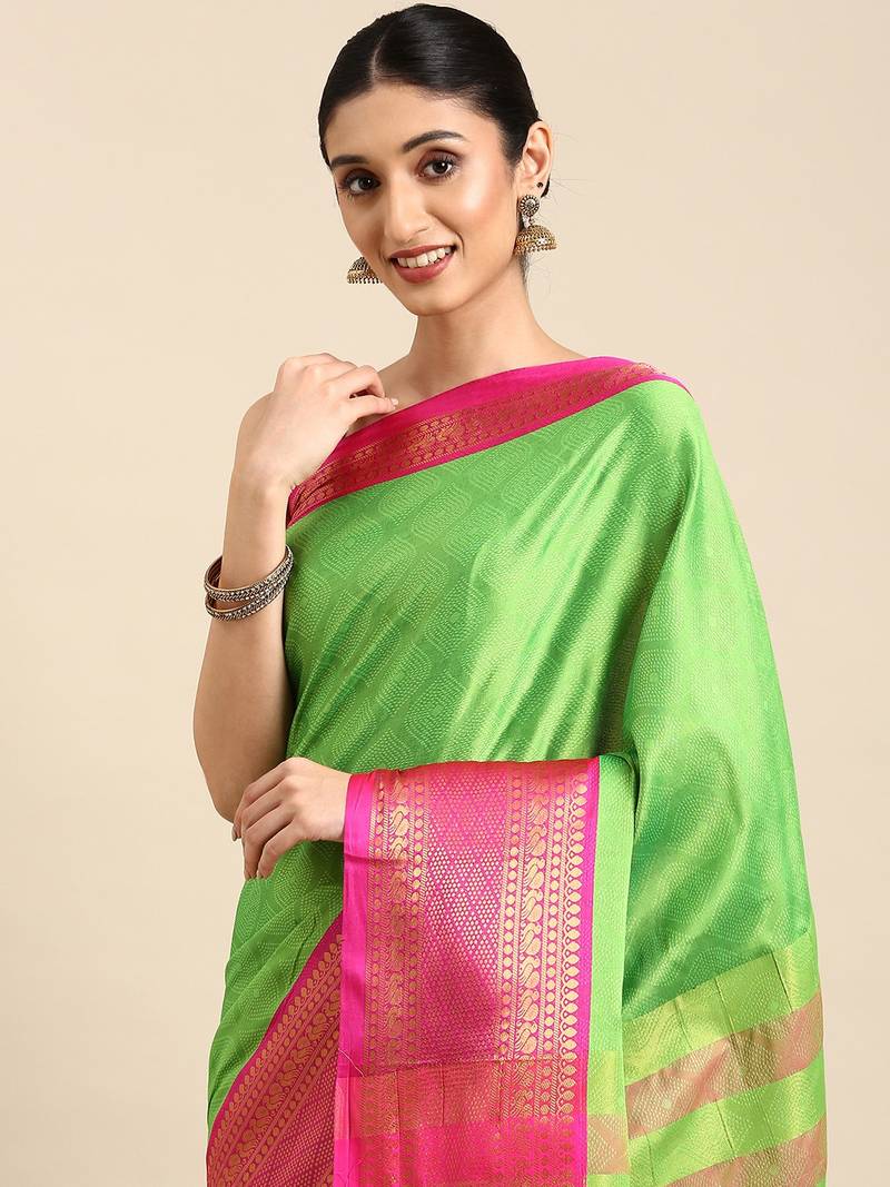 | Product Name | Parrot Green Woven Silk Blend Saree With Blouse | |