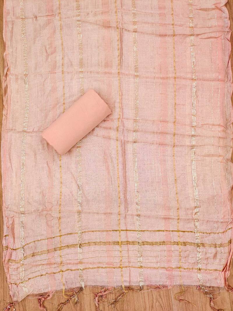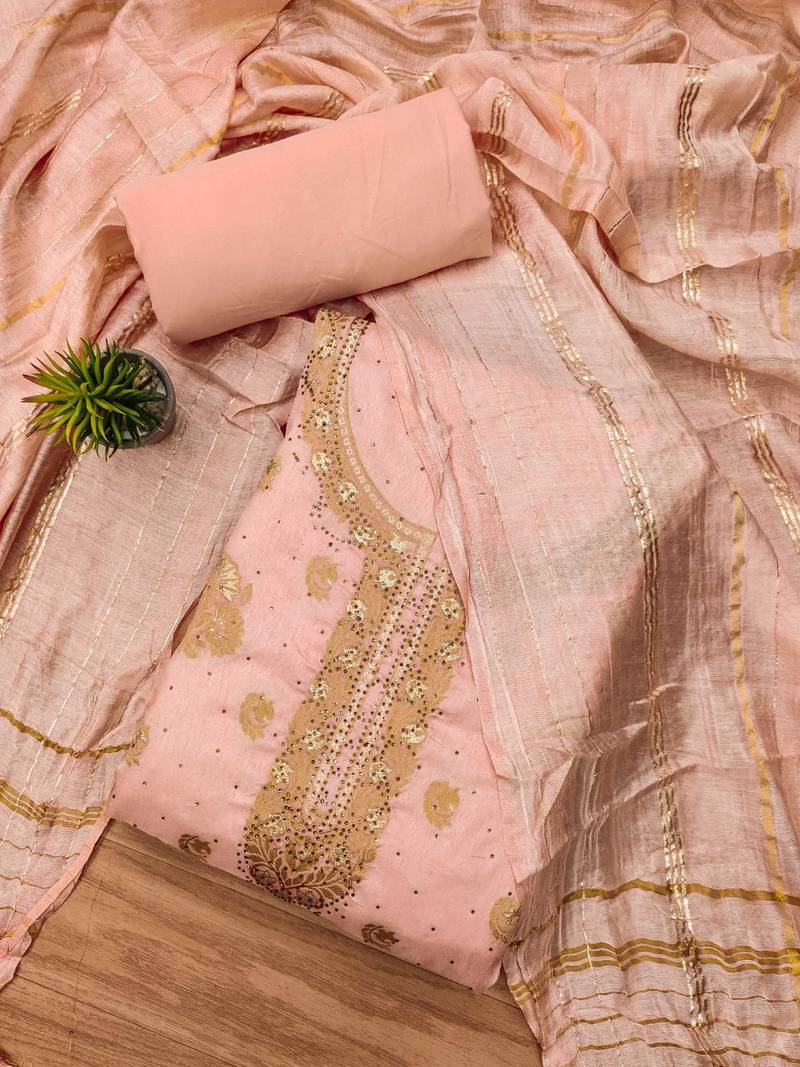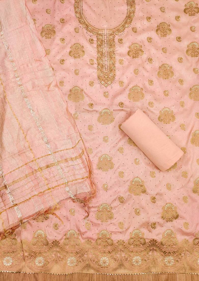 Peach jacquard chanderi silk salwar unstitched