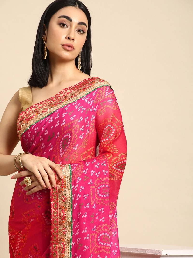 | Product Name | Pink Bandhani Saree With Lace Border And Unstitched Blouse Piece | |