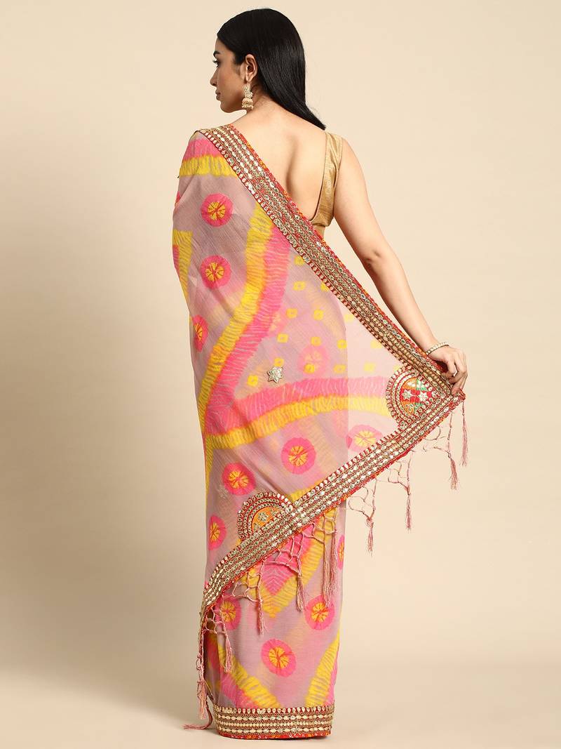 | Product Name | Pink Bandhani Saree With Lace Border And Unstitched Blouse Piece | |