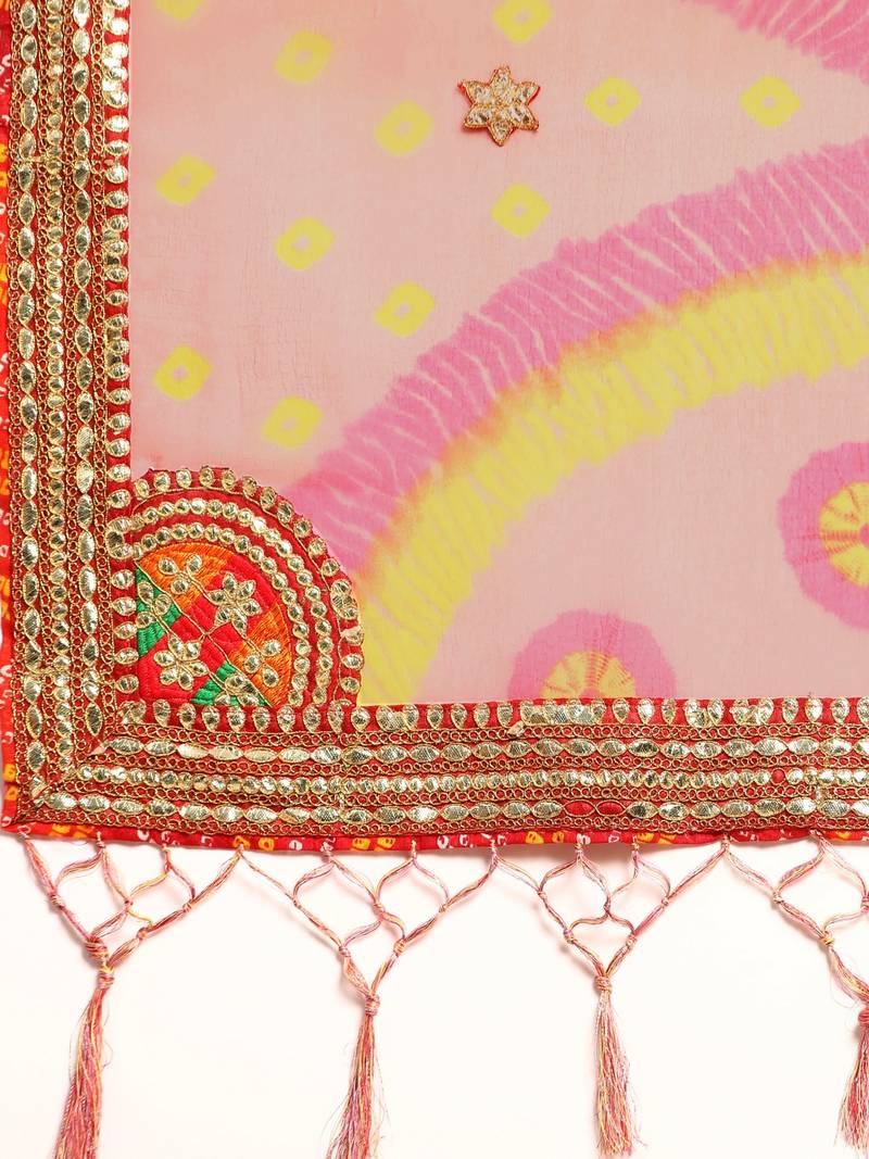 | Product Description | Bandhani Saree With Lace Border And Unstitched Blouse Piece |