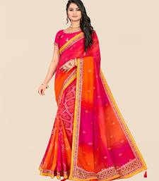 Pink georgette bandhani saree with unstitched blouse piece