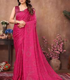 Pink satin silk party wear saree with blouse piece
