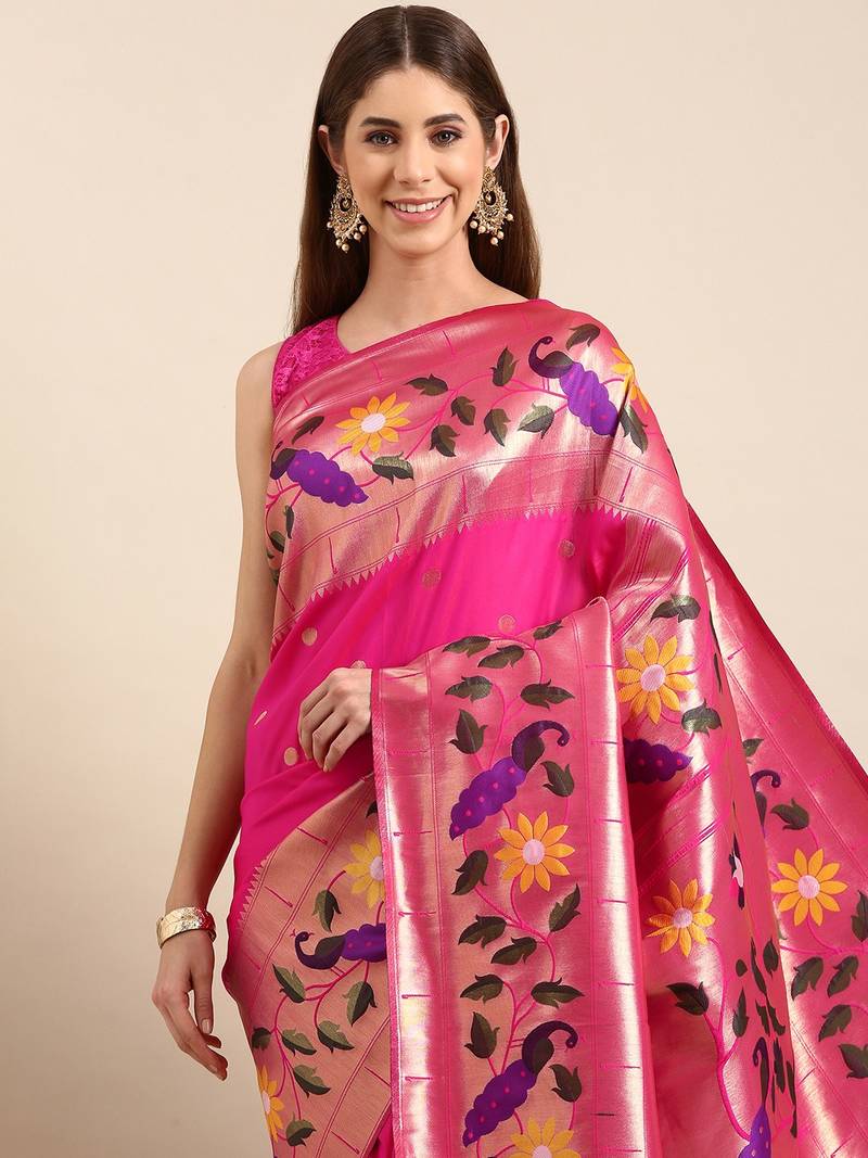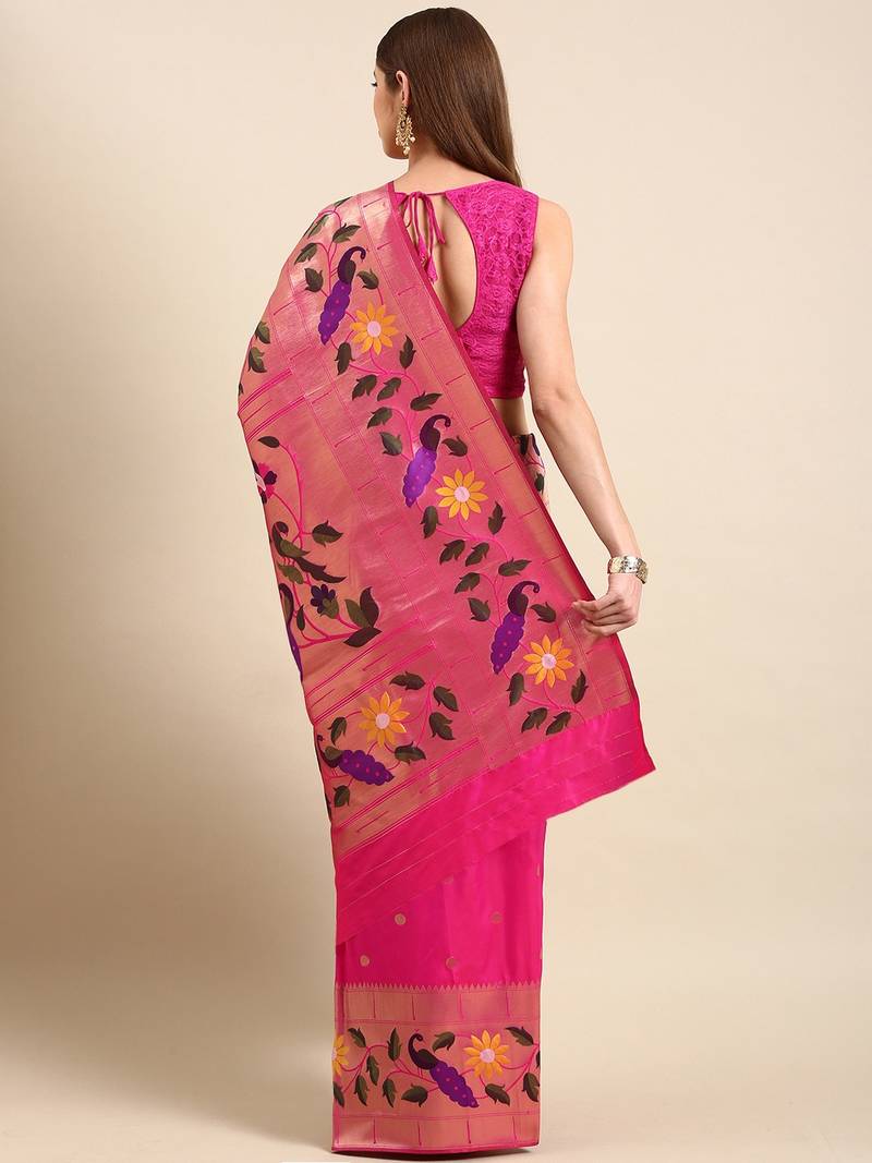 | Product Name | Pink Woven Paithani Silk Saree With Blouse | |