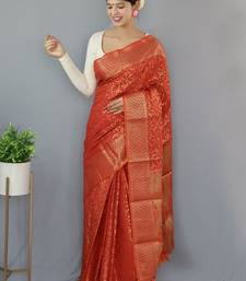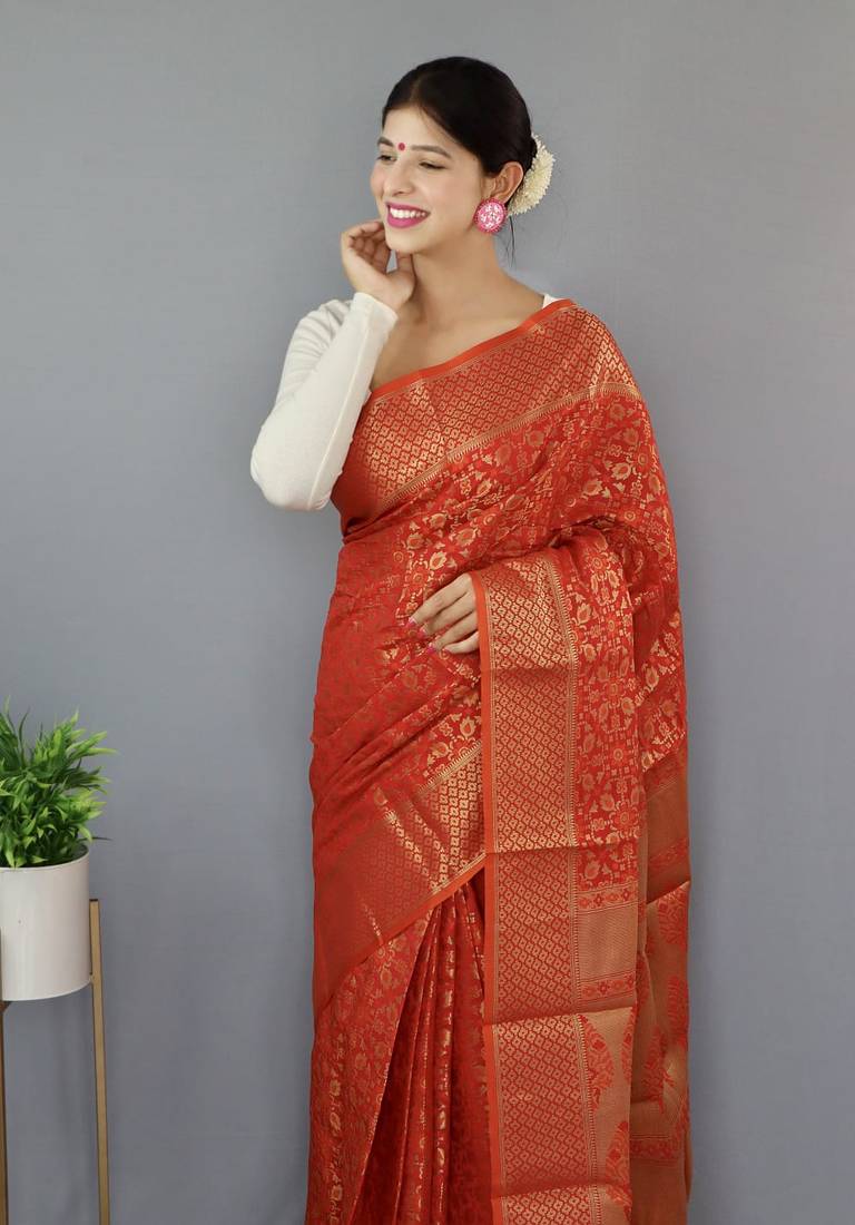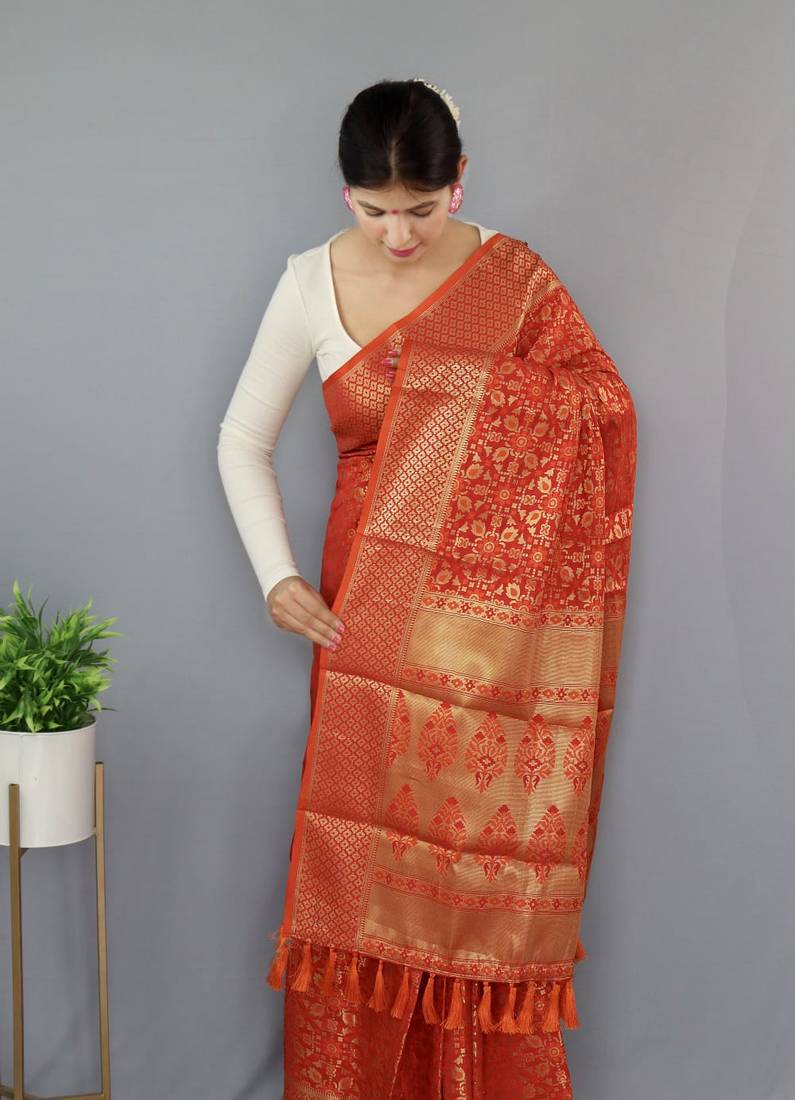 Red woven banarasi saree with blouse