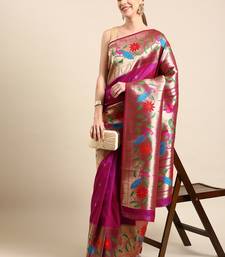 Wine woven paithani silk saree with blouse