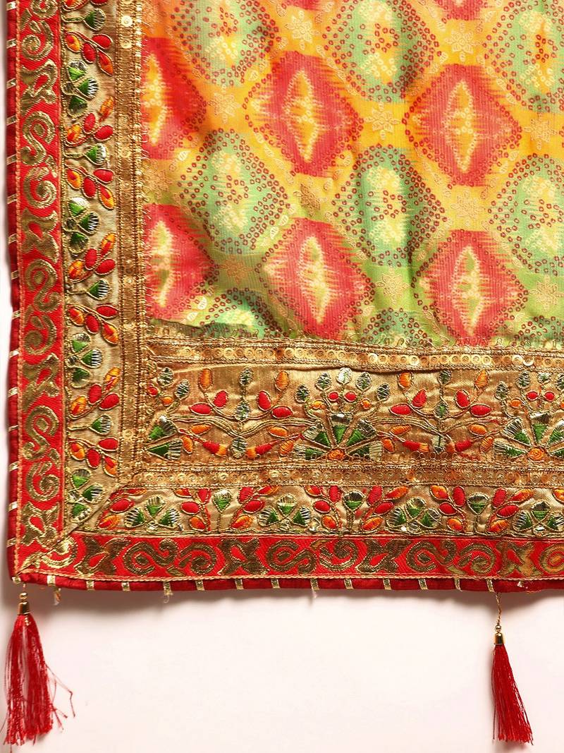 | Product Description | Bandhani Saree With Lace Border And Unstitched Blouse Piece |