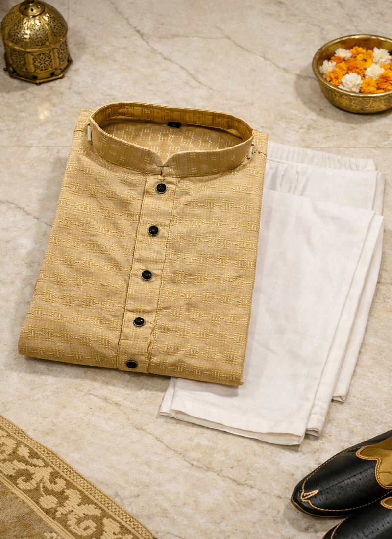 | Product Name | Beige Color Jaquard Butti Work Jaquard Silk Kurta Payjama Set | |