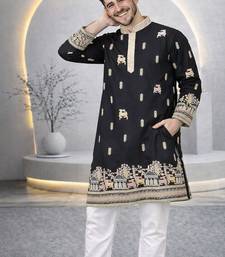 Black color multi thread embroidery work silk kurta payjama set