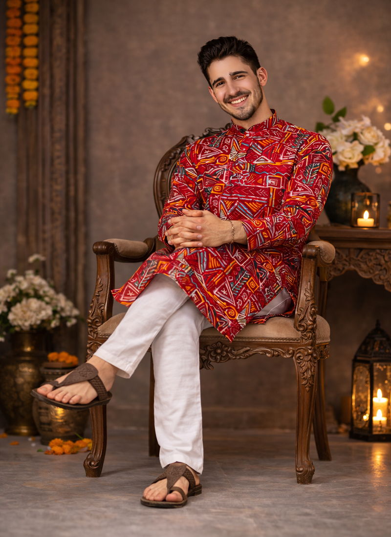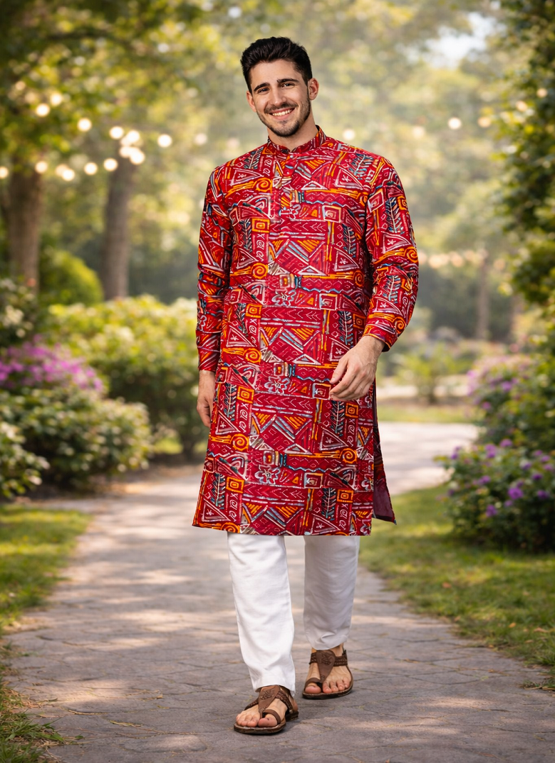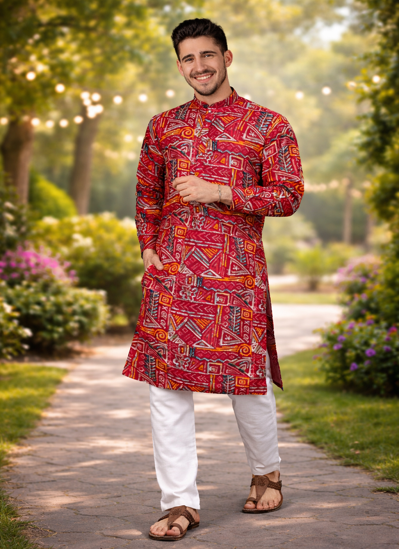 | Product Description | Bright And Eye Catching, The Maroon Color Kurta Pajama Set Made From Cotton Fabric Gives A Light And Comfortable Feel. The Kurta Features Multicolor Foil Print Work All Over, Creating A Lively And Festive Look With A Mix Of Patterns And Colors. Paired With A Matching Pajama, The Maroon Multicolored Foil Print Work Cotton Kurta Pajama Set Is Perfect For Festive Days, Casual Functions, And Traditional Gatherings. Easy To Wear And Comfortable, This Outfit Adds A Cheerful Touch To Your Overall Look. |