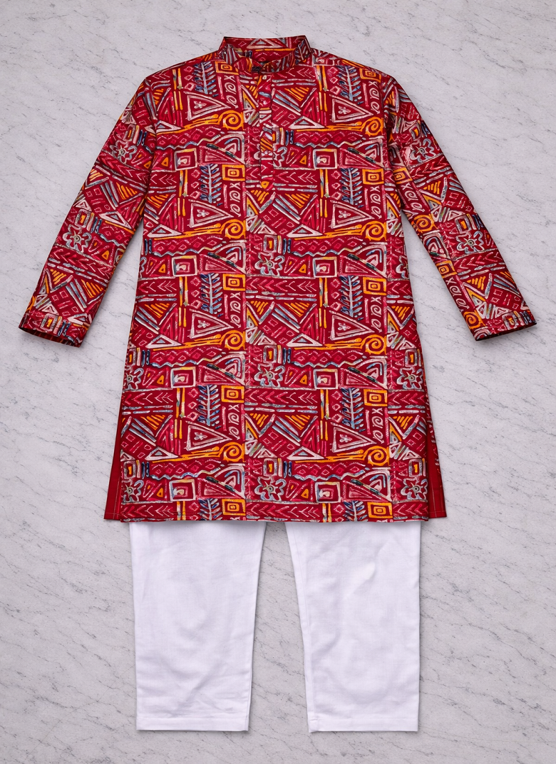 | Product Name | Maroon Multicolor Foil Print Cotton Kurta Pajama Set | |
