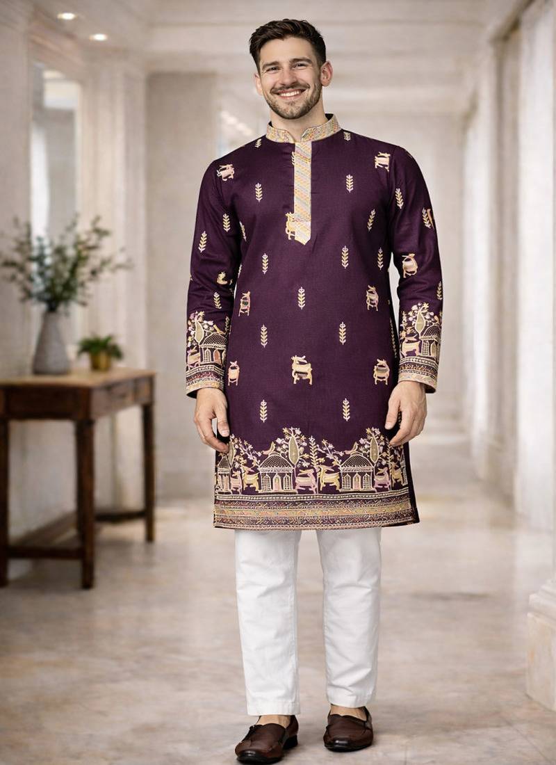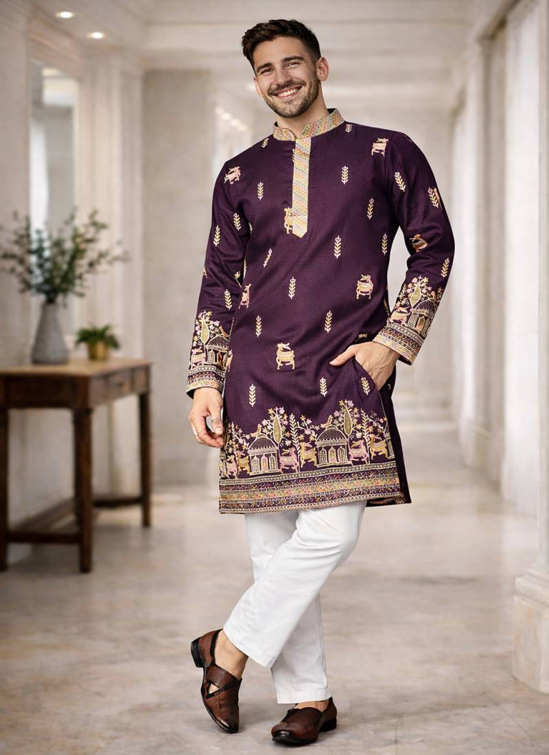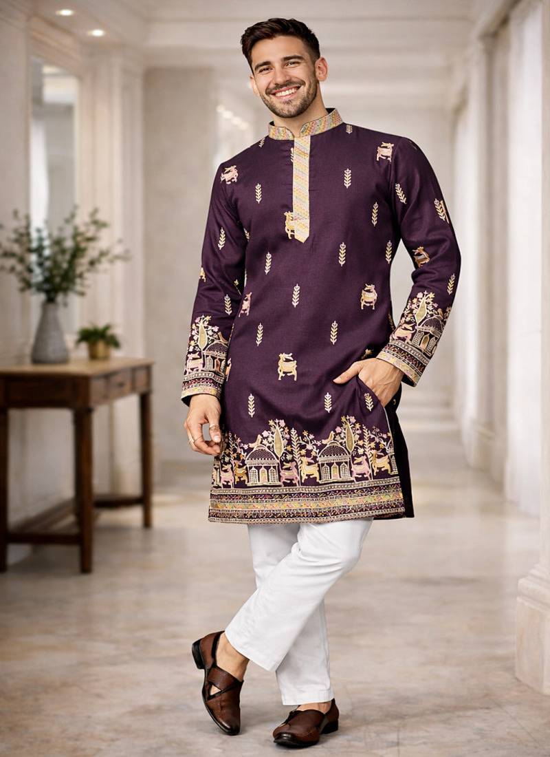 | Product Name | Purple Color Multi Thread Embroidery Work Silk Kurta Payjama Set | |