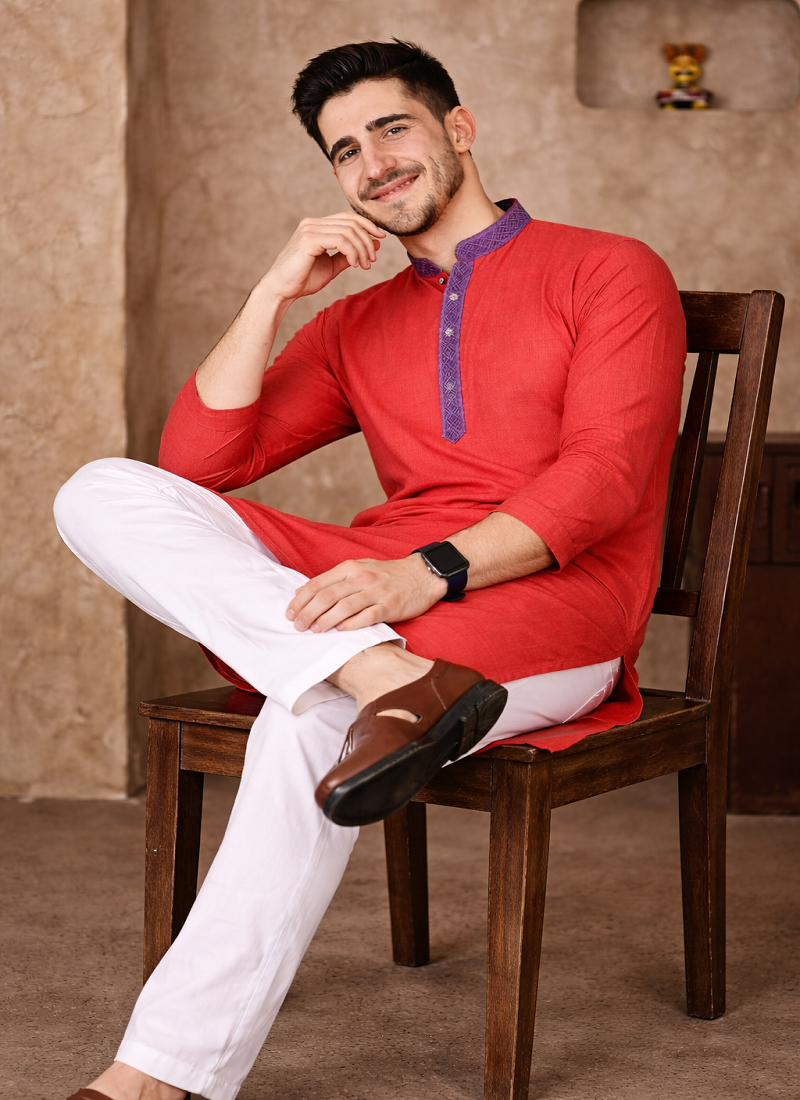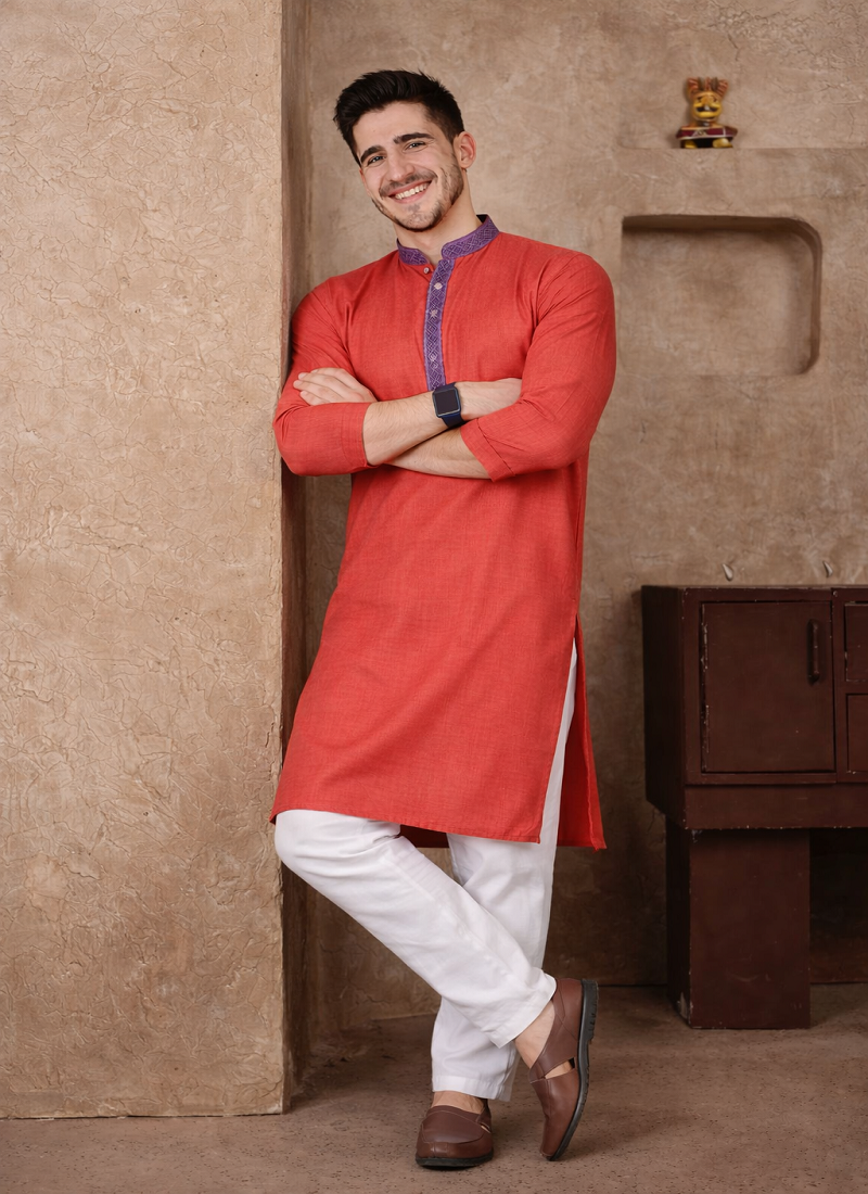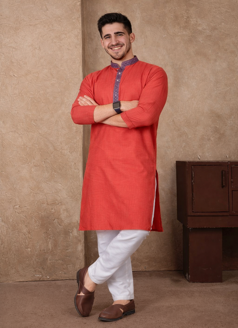 | Product Description | Simple And Stylish, The Red Color Kurta Pajama Set Made From Linen Silk Fabric Gives A Comfortable Feel With A Neat Traditional Look. The Kurta Features Jacquard Weaving Work On The Neckline And Placket, Adding A Subtle Design Detail Without Making The Outfit Look Heavy. The Red Color Jacquard Weaving Work Linen Silk Kurta Pajama Set Is Suitable For Festive Wear, Family Functions, And Traditional Occasions. The Fabric Is Light, Breathable, And Comfortable, Making It A Good Choice For Long Hours Of Wear While Still Looking Well Dressed. |