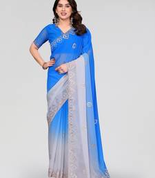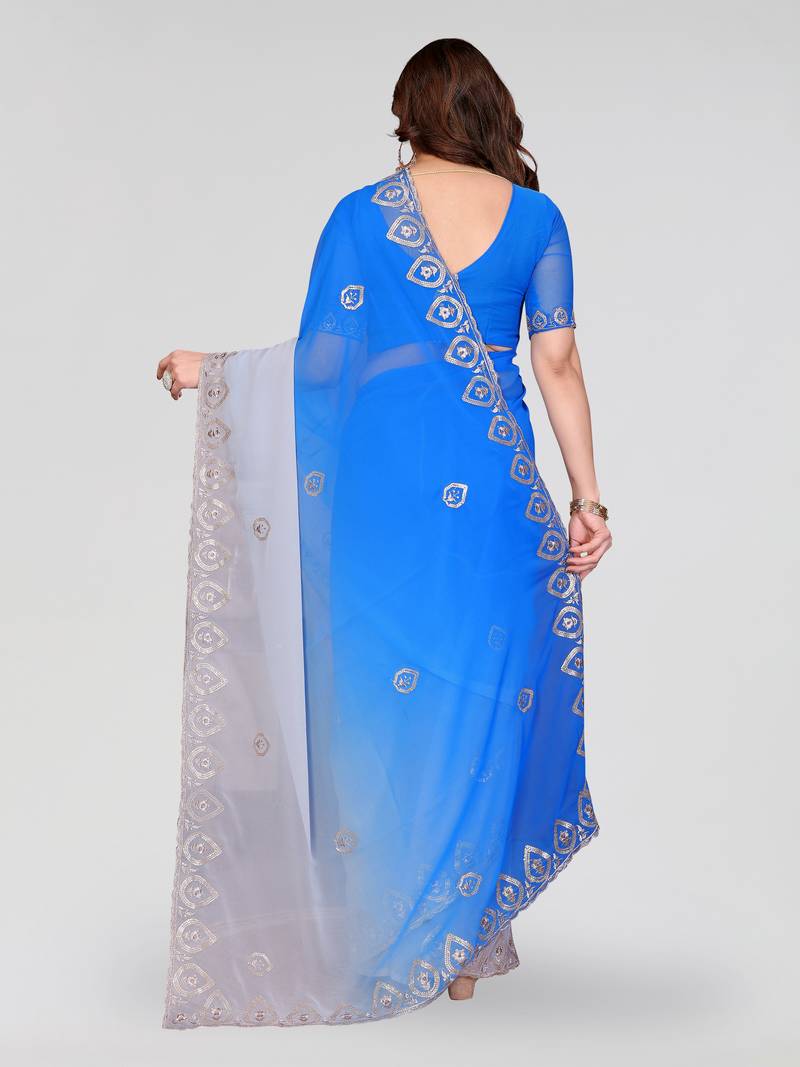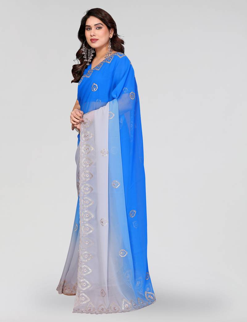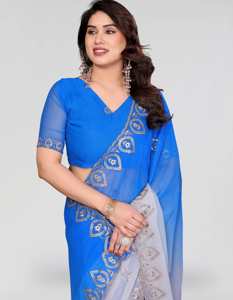 Blue greay georgette silk pading with embroidery work saree and embroidery work blouse