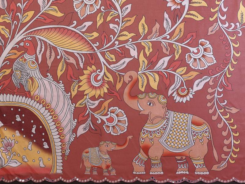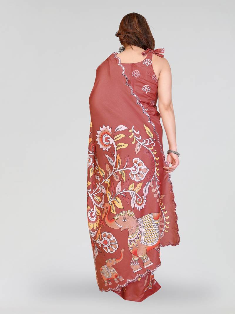 | Product Name | Brown Manipuri Silk Kalamkari Digital Print Saree With Mirror Work Border | |