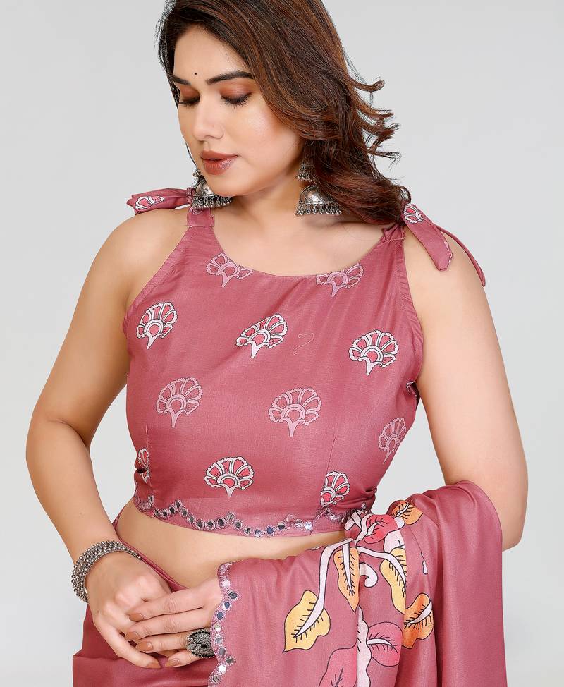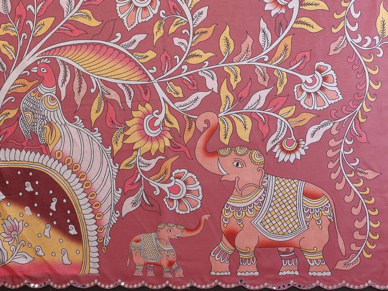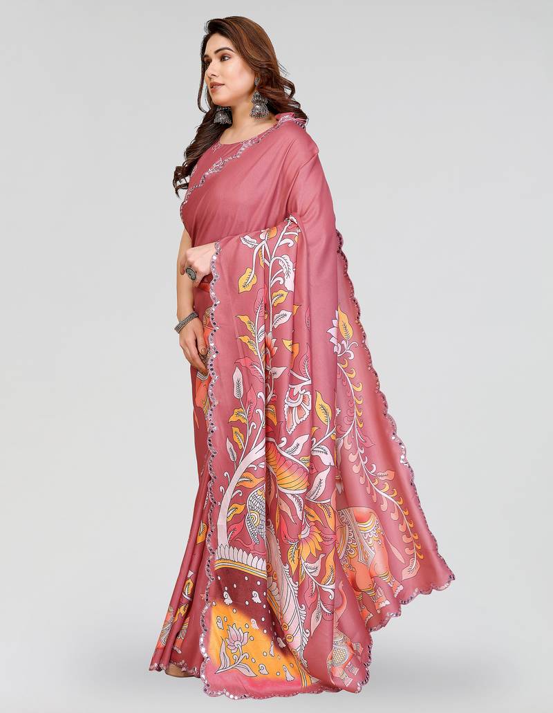 | Product Name | Peach Manipuri Silk Kalamkari Digital Print Saree With Mirror Work Border | |