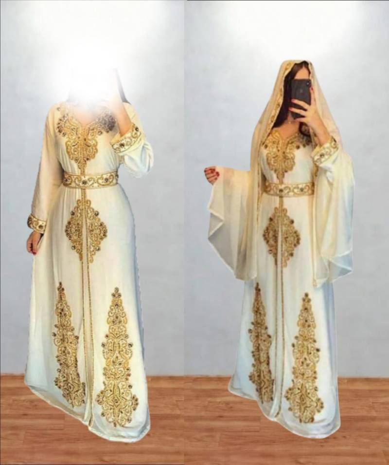 Product Name Luxurious Off White Kaftan With Gold Work Stitched Dress