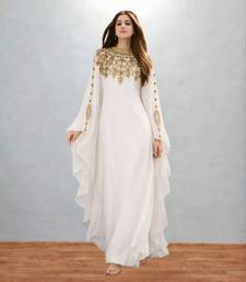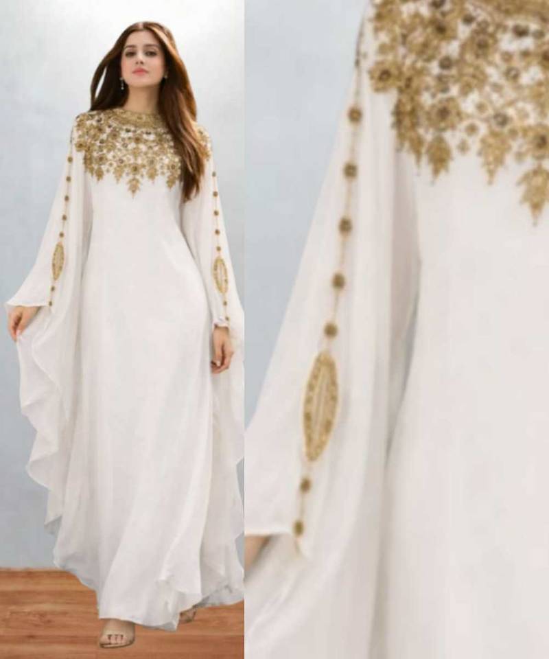 Luxurious White Kaftan With Gold Work Stitched Dress
