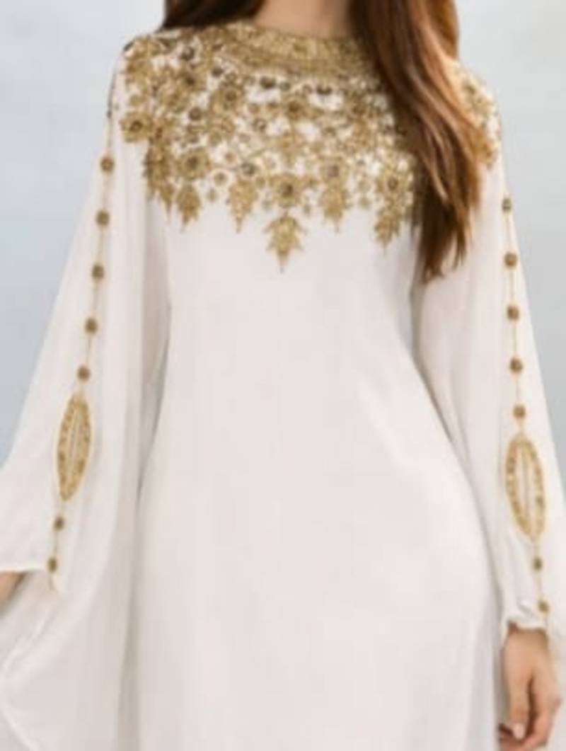Luxurious white kaftan with gold work stitched dress