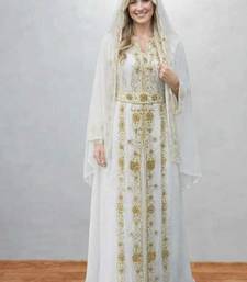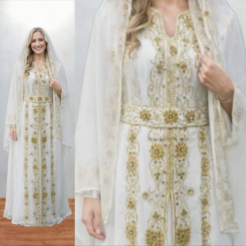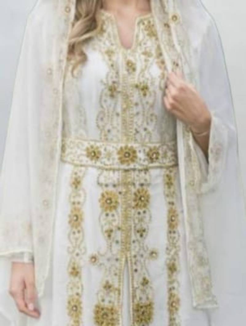 Luxurious white kaftan with gold work stitched dress